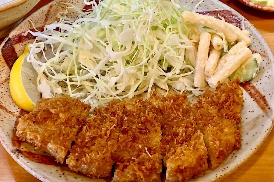 では、実際に黄金色に揚がったロースカツ定食をいただきます!