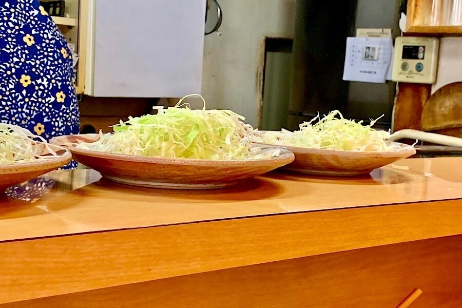 ご主人がとんかつを揚げ、奥さんがそれ以外の準備をするという、もう何十年もやってきたであろうという一連の流れを、まさに阿吽の呼吸でスムーズにこなします。