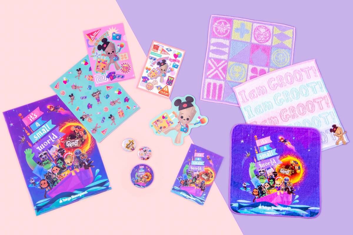 また、「イッツ・ア・スモールワールドwithグルート」の世界観を描いたクリアホルダーセットやミニタオルセットのほか、トートバッグやカチューシャなどの身につけグッズも登場します。