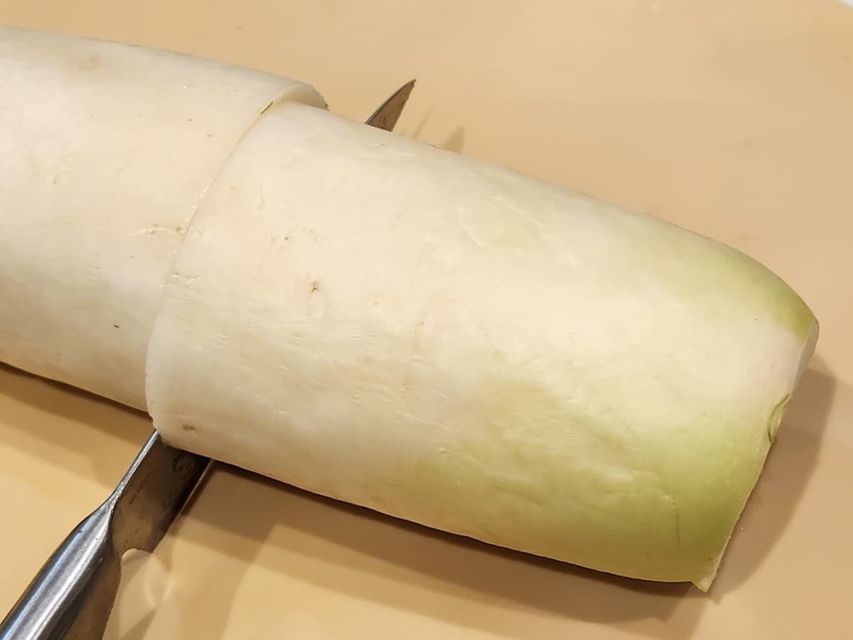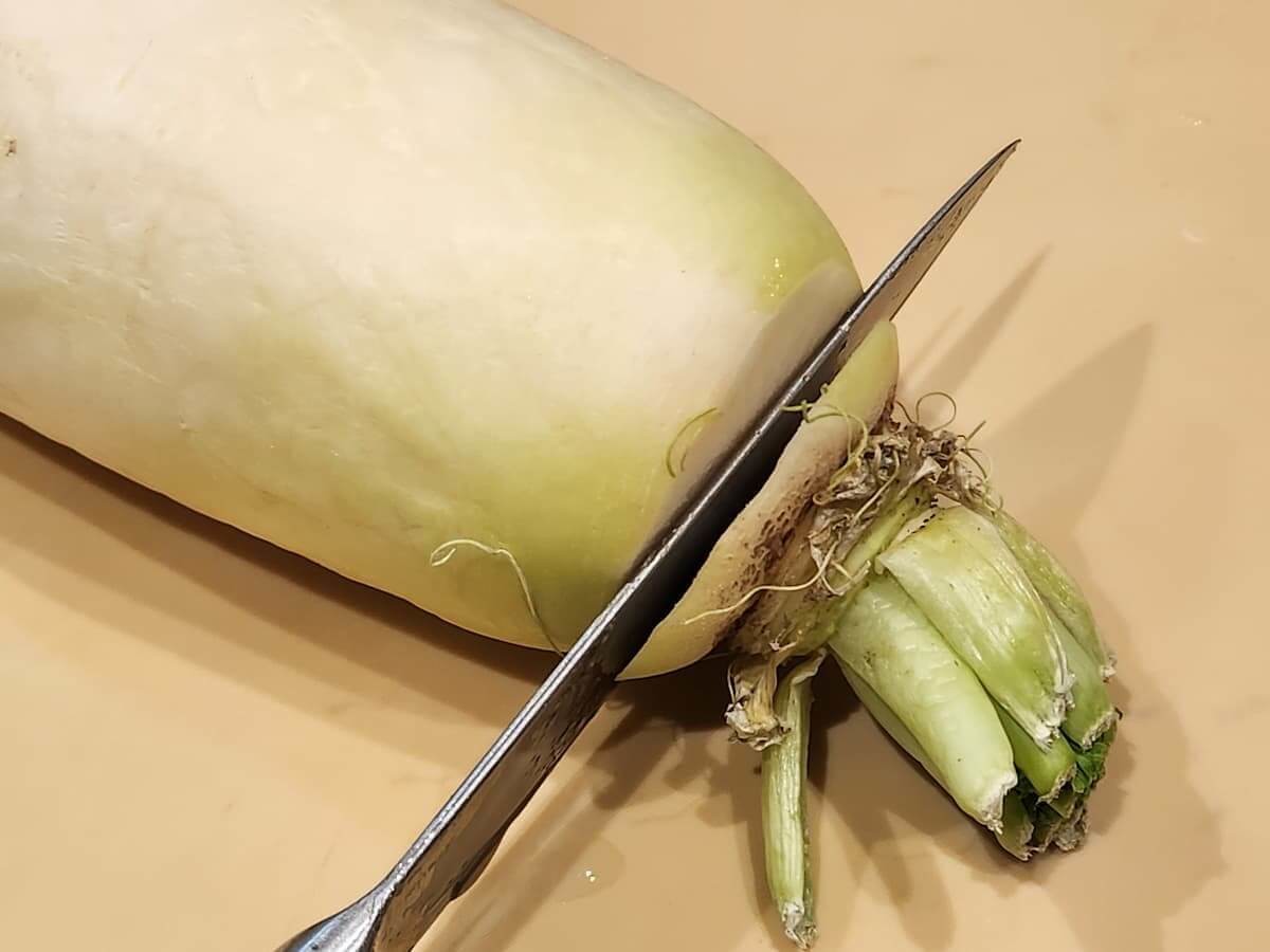 大根がまるまる1本の場合は、ここで半分にカットしましょう。
