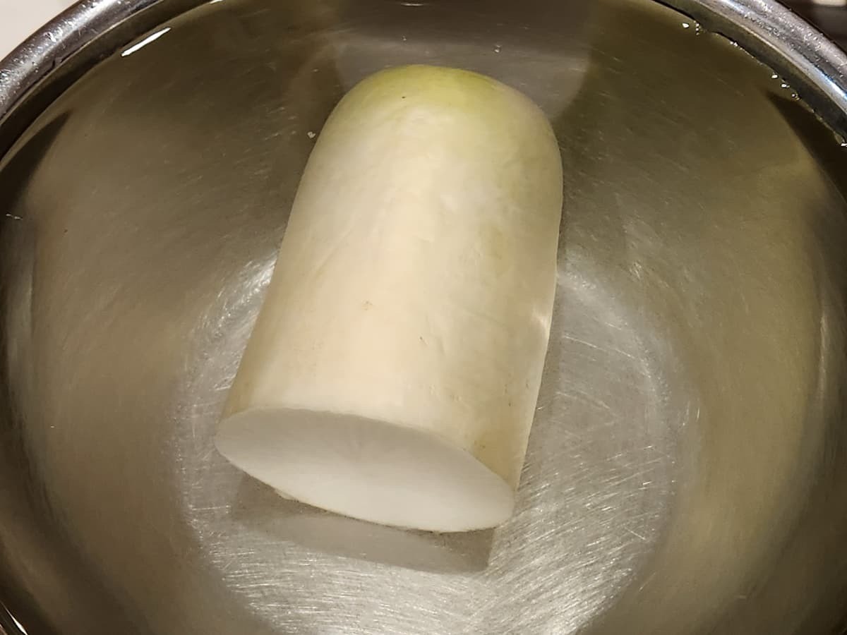 ②ボウルに水を張って大根をつける