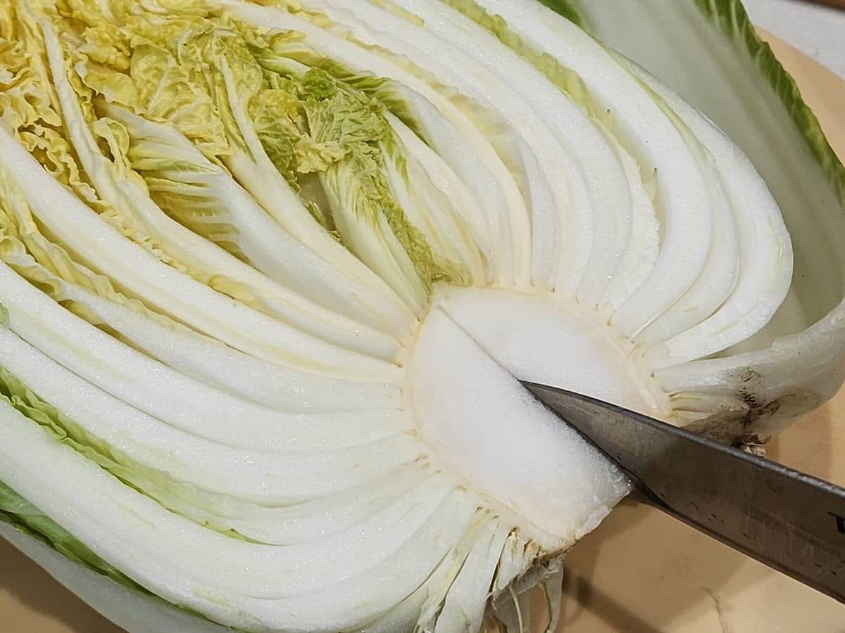 手順①白菜の芯(真ん中)に切れ込みを入れる