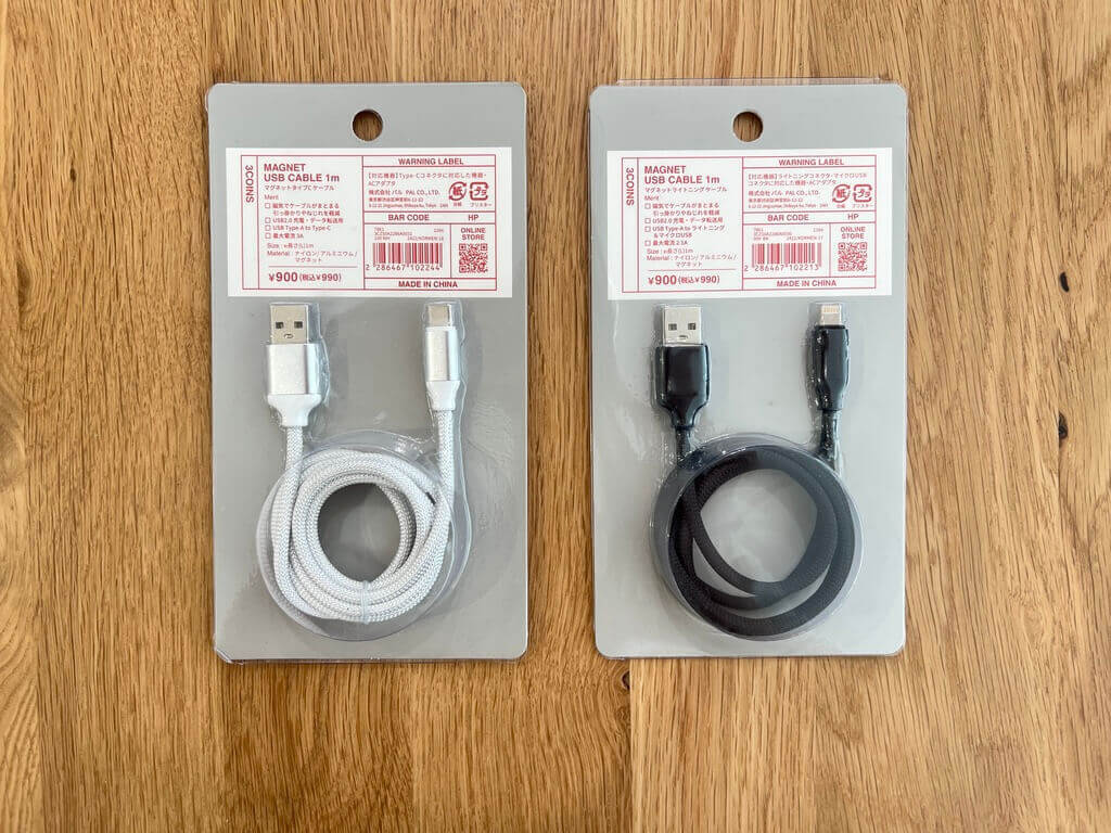 3COINSのマグネットUSBケーブルは、ケーブルコードの中にマグネットが内蔵されているため、巻きつけるだけでケーブル同士が磁力でくっつくのです!