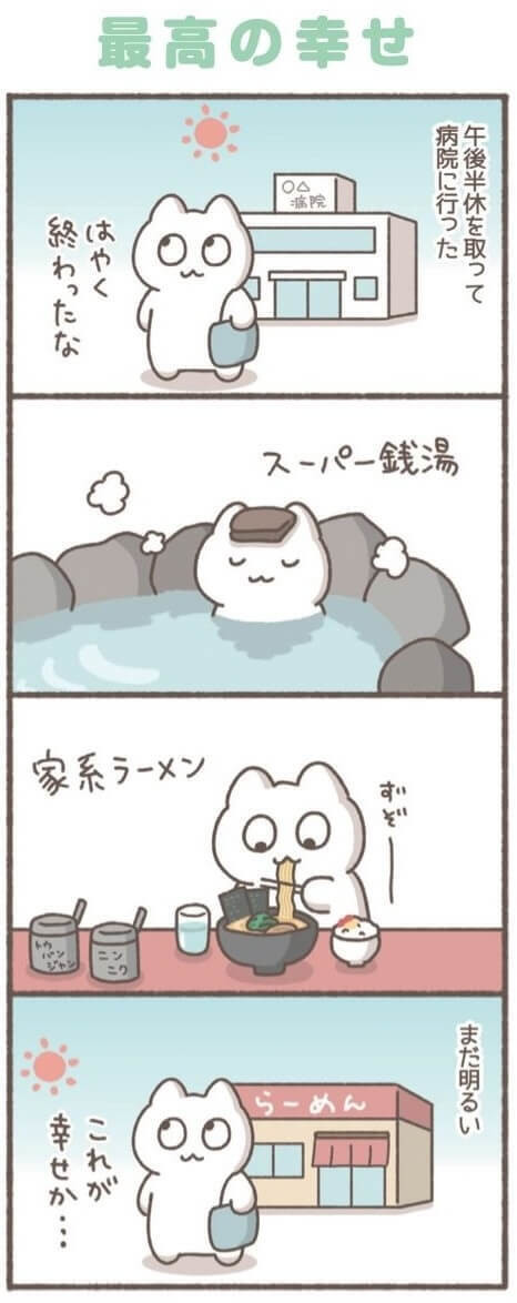 とにかく休みたいし行きたくないけどがんばる「仕事」、目を逸らしたいけどがんばって向き合う「健康」、それでもささやかな「幸せ」のために、毎日がんばっていきる……!