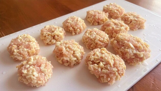 鶏むねミンチ、片栗粉、塩コショウを加えて……