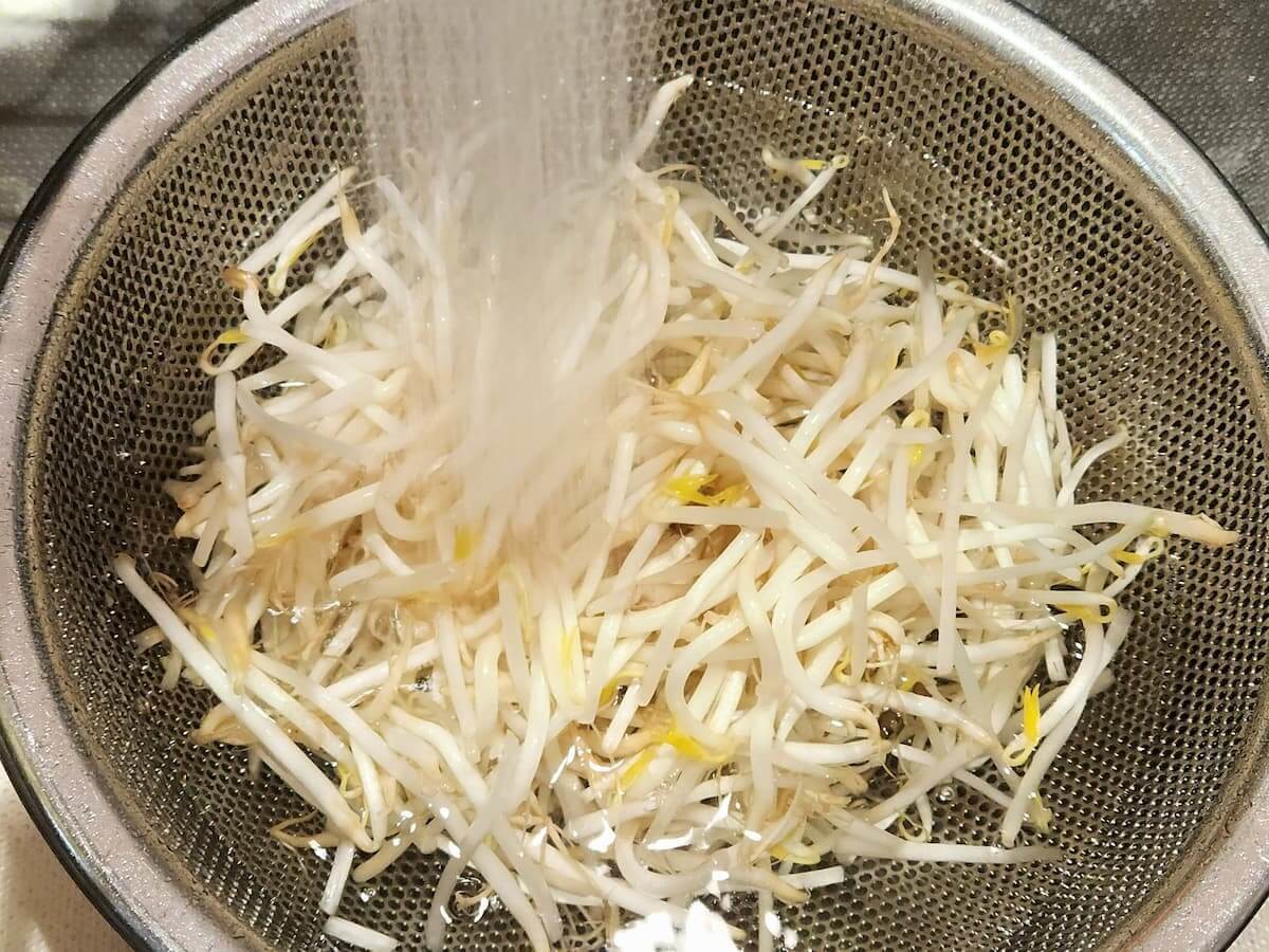 もやしのパッケージに「調理前に水洗いしてください」と記載のあるものは、洗わないと臭いがするのでしっかり洗いましょう。