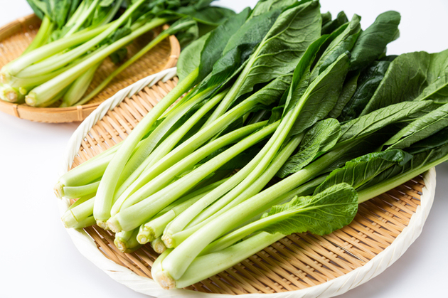小松菜の旬は9月~12月といわれていますが、実は年間を通じて収穫でき、安定して流通しているため価格面でも栄養面でも優秀な野菜です。台風で多くの葉物野菜がダメージを受け、軒並み価格高騰中ですので、葉物野菜は小松菜を食卓に取り入れることをおすすめします。(本多さん)