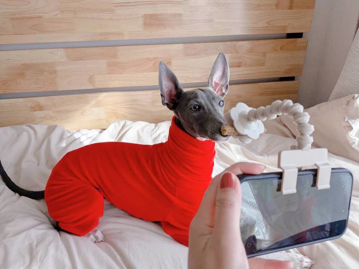 内側に取り付ければ、インカメを使って愛犬と頬を寄せ合った自撮りツーショットも撮れます。