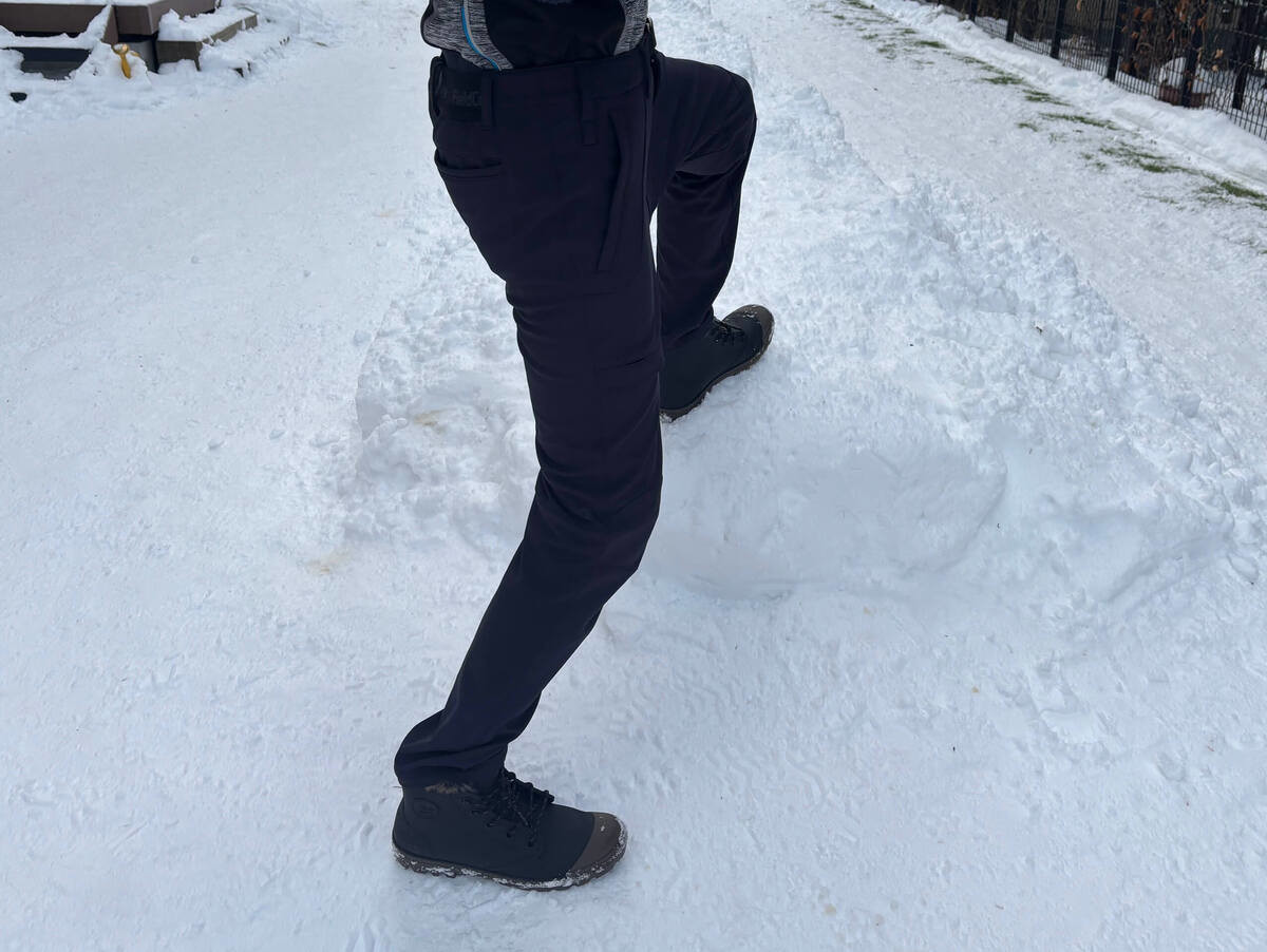 ストレッチ性が高く、ジョギングや雪かきのような動きの多いシーンでも快適に使えます。