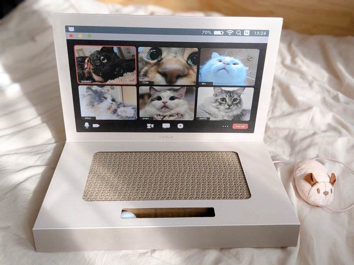 この商品は、あくまで「爪とぎをするとリモート会議しているように見える、うちの可愛い子を愛でるグッズ」もしくは「うちの自慢の可愛い子ちゃんをもっと可愛くするグッズ」です。