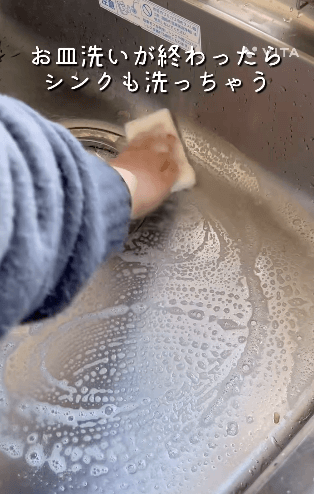 泡立ちも十分で、食器洗いが終わったらシンクや蛇口周り、排水口のお掃除もできます。