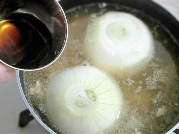 だしを加えたときに、たまねぎ2個がつかるくらいの大きさの鍋を準備しましょう。私は始めに使っていた鍋が大きすぎたので、途中で小鍋に移しました。