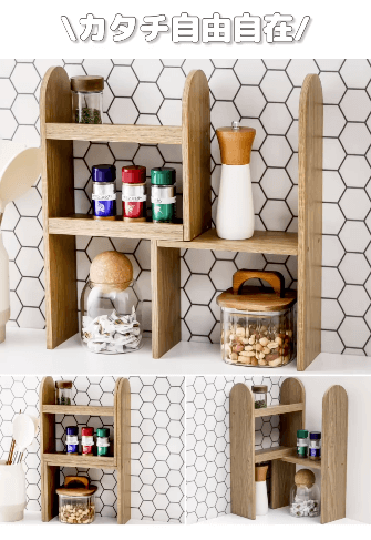 自宅のキッチンのデッドスペースや、収納するものに合わせて調整できるのがうれしいですよね♪
