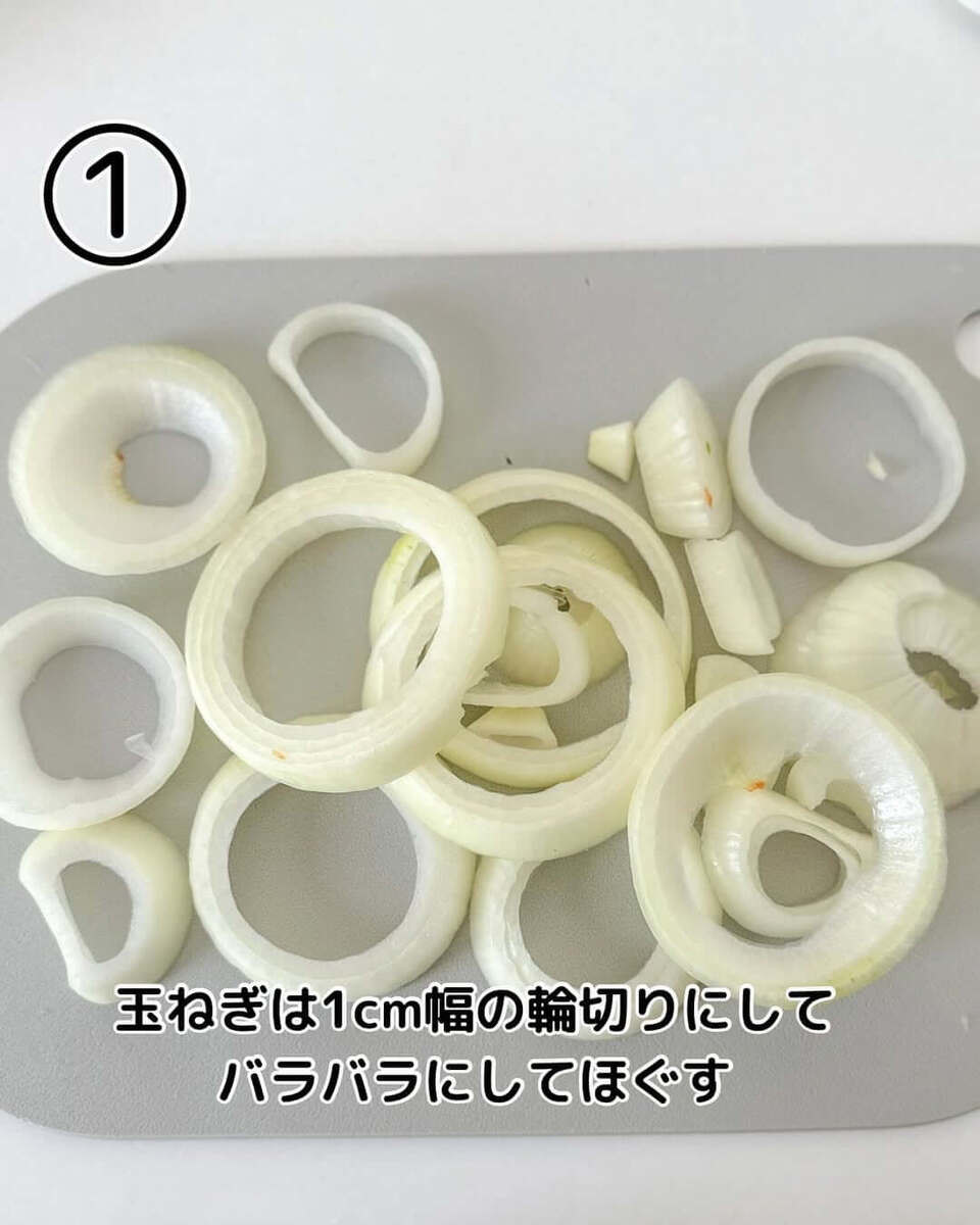 作り方①玉ねぎをカットしてほぐす