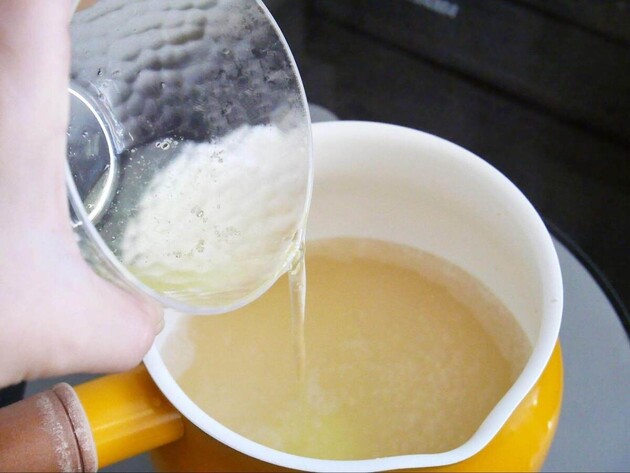 鍋に水と顆粒チキンスープの素、しょうゆを入れて中火にかけます。ひと煮立ちしたら卵白を加えて鍋の中でゆっくりかき混ぜましょう。
