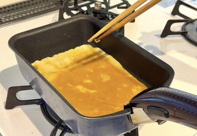 - 卵焼き器の温度を確かめること
