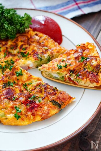 野菜をたっぷり入れて焼き上げた彩り美しいイタリアンオムレツです。具材をケチャップで炒めることで、味がぼやけず引き締まった味わいに。使用する野菜は冷蔵庫の残り物でもOK!お好みでアレンジも楽しめます。