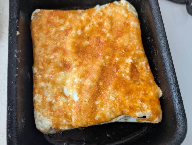チーズの端がこんがりきつね色になってきたらひっくり返し、裏面も1分ほど焼き、お好みのこんがり加減になったら完成です。