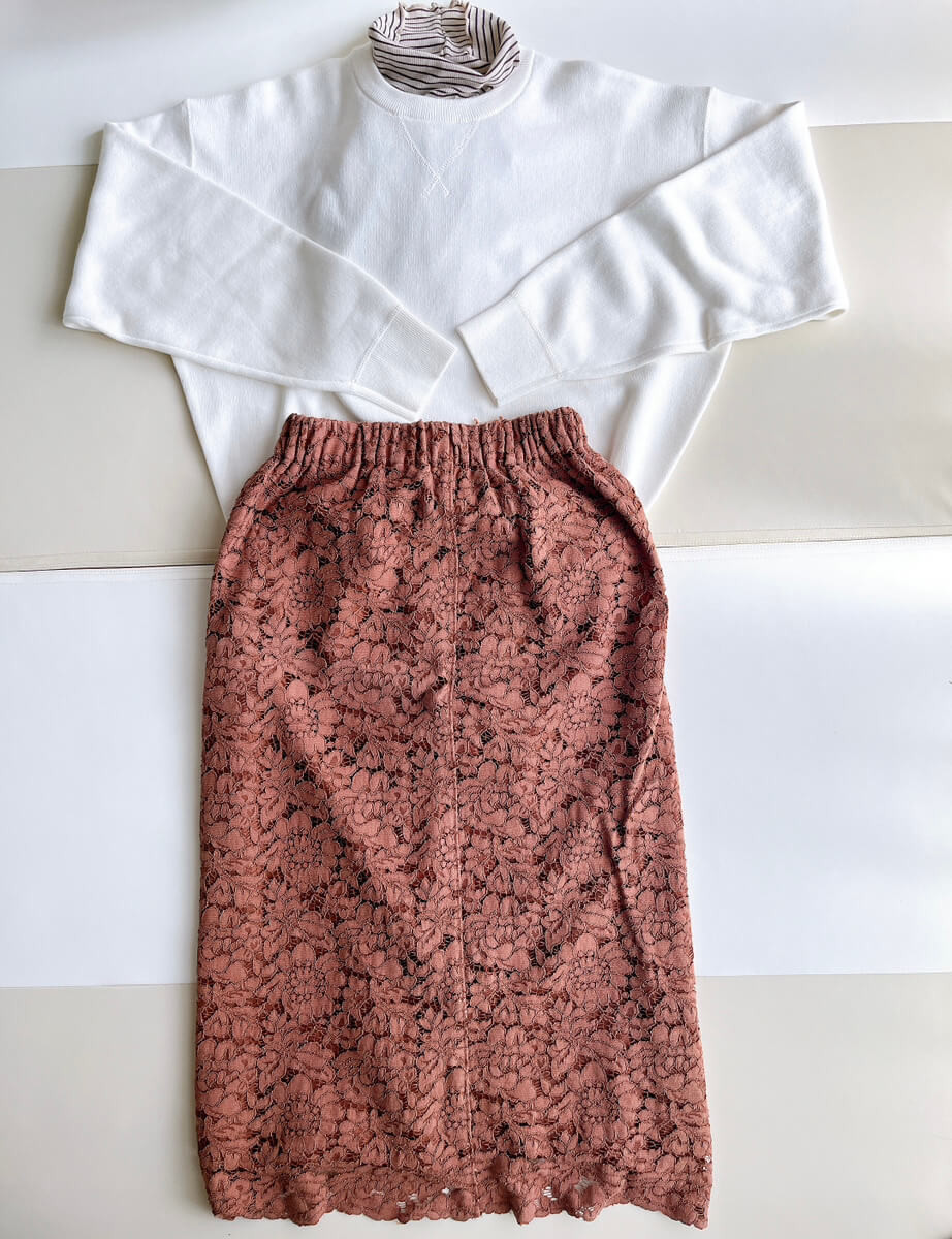 レースのタイトスカートで、オフィスコーデにもおすすめです。