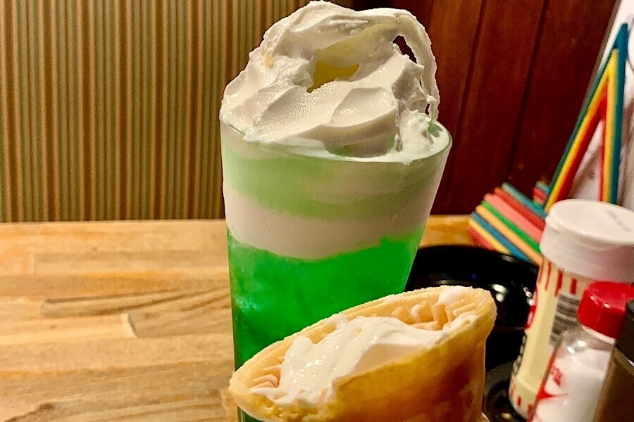 〇〇フロート、と名のつくものは「孤独のグルメ」で見た衝撃的なインパクトがあるデザートドリンクです。今回は、喫茶店といえばのクリームソーダフロートにしてみました。