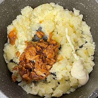 なめたけは丸ごと、ツナ缶も油切りせずに、1缶まるごと入れてください。