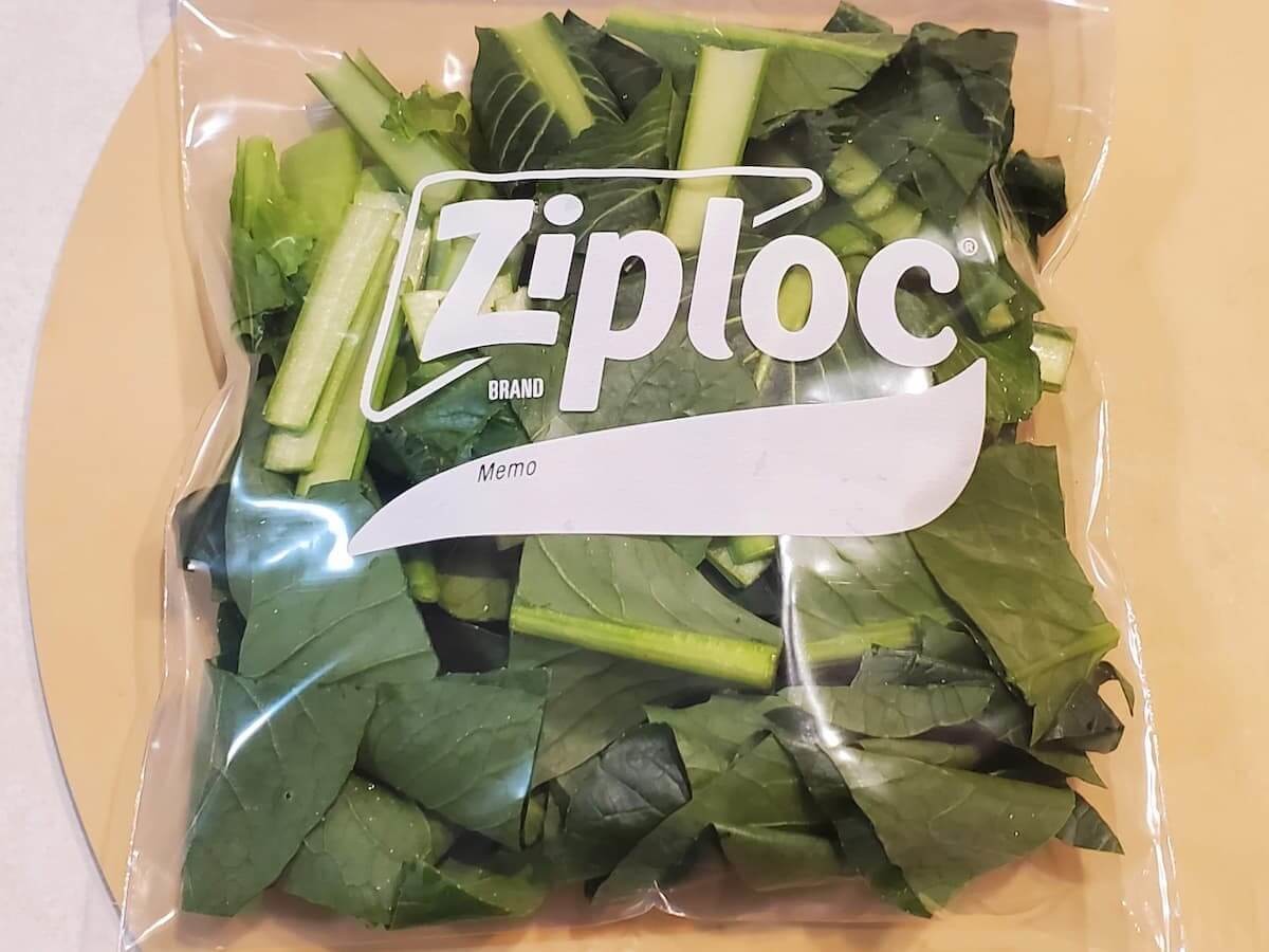 小松菜を冷凍保存する場合、「茹でてから冷凍しないとダメですよね?」と聞かれることが多いのですが、そんなことはありません。小松菜は生のまま冷凍することができるんです。