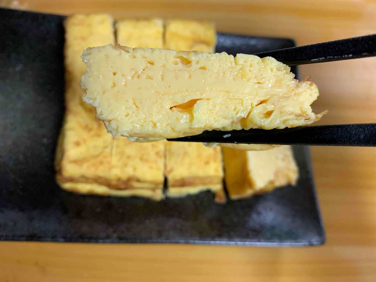 甘すぎず、ちょうどよい味付けになっています。焦げ目がなく、「玉子焼き」というより「だし巻き」に近い感じかもしれません。