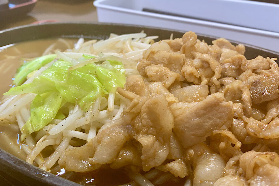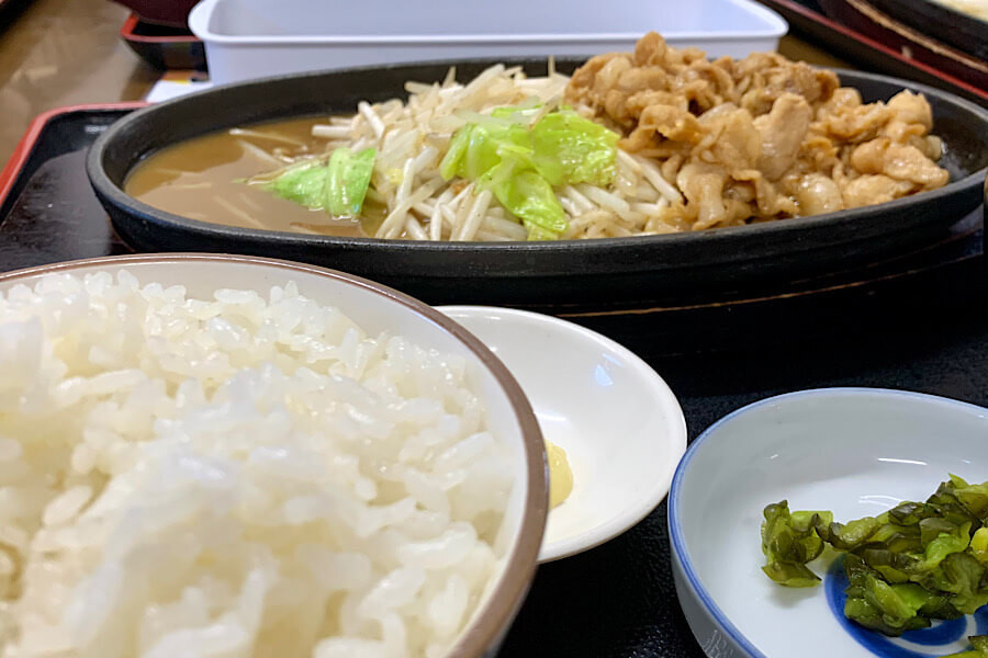 店主の祖父から受け継いだというにんにくの効いたタレを使った豚バラ焼きは、そそられるいい匂いがして、それだけでご飯が食べられそうです。