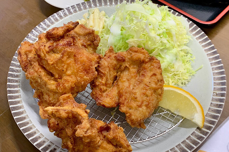 一緒に注文した唐揚げも大きいです。ひとつが握りこぶしくらいあります。カリじゅわで、味も美味しいおすすめの一品です。