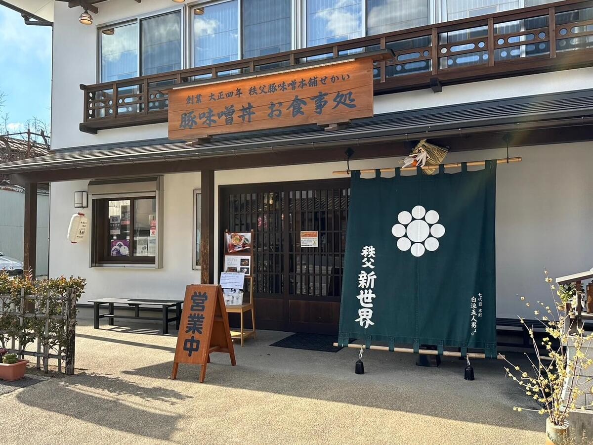「お食事処 秩父豚味噌丼 新世界」は、元々は1915年に創業された老舗の精肉店。お食事処の近くには精肉販売店があり、そこで生の豚味噌を購入することもできるんです。