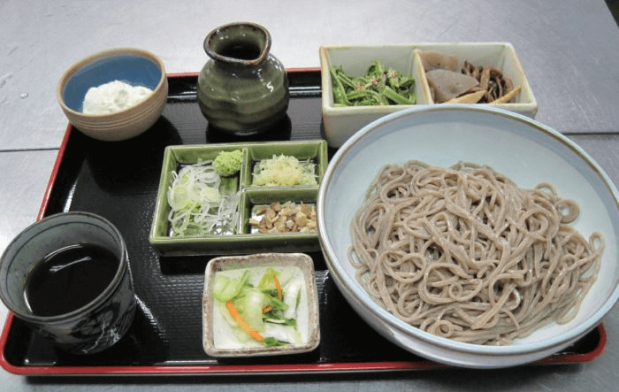 手打ちごっぽうそばは、ごっぽう(オヤマボクチ)の葉の繊維をふのりとあわせ、つなぎに使用しています。ごっぽうそばは歯ごたえがあり、のど越しがよいのが特徴です。セットや単品で注文できますので、お越しになった際にはぜひご賞味ください。