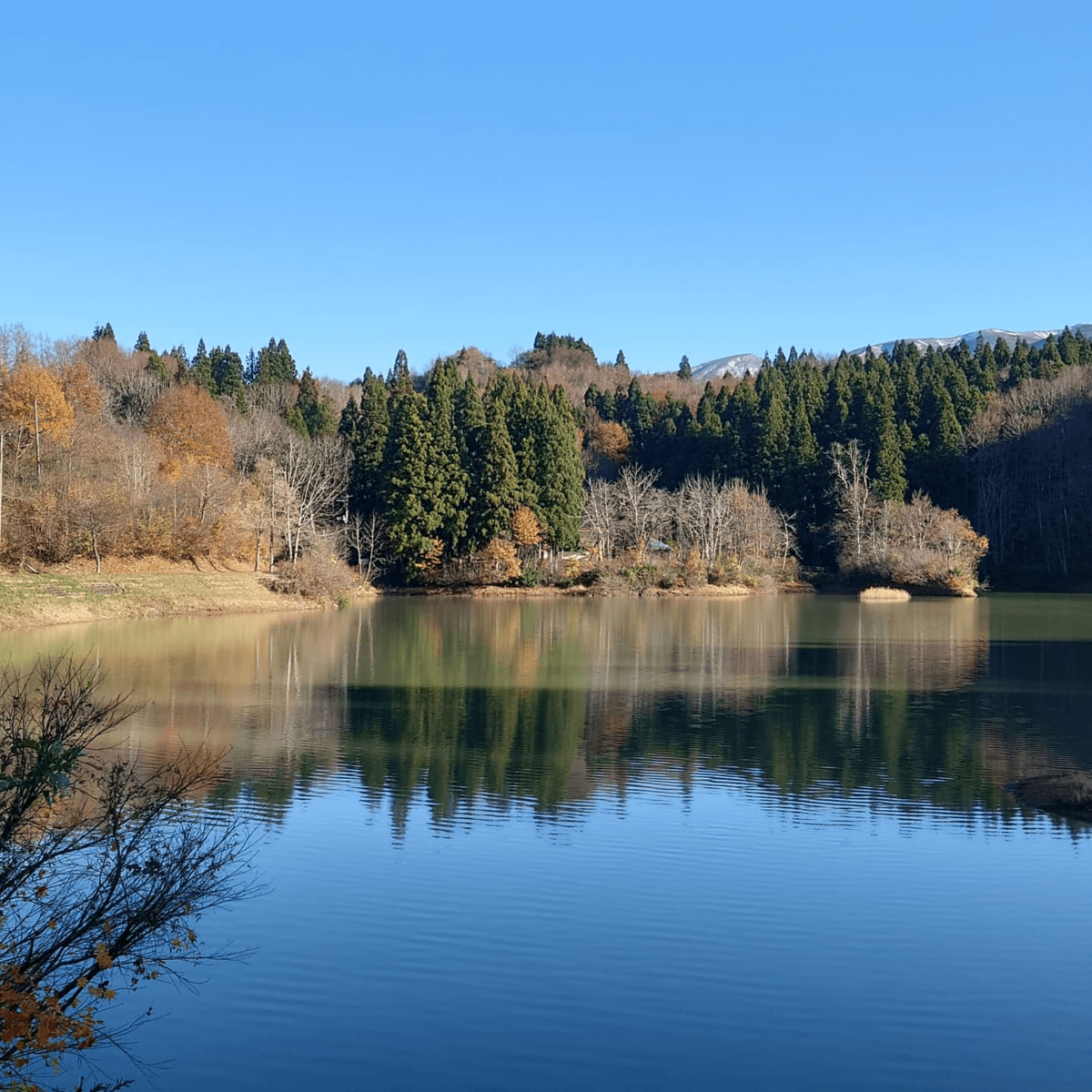・鏡ヶ池で釣りを楽しんだり遊歩道で散策をしたりして過ごせる