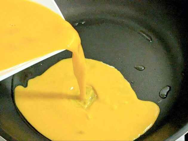 残りの卵液をすべて使い、もう一度、同様に作りましょう。