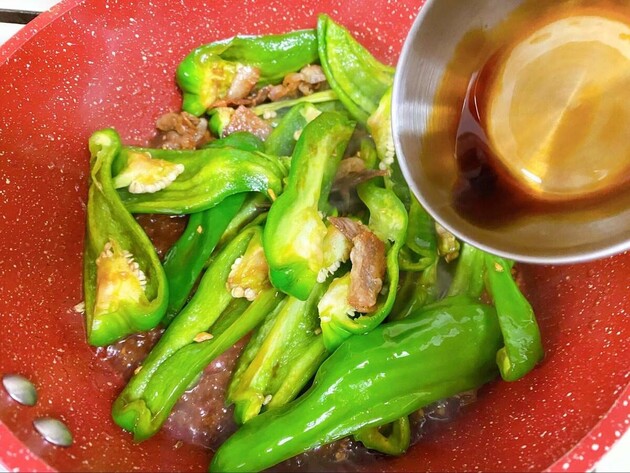 作り方③ピーマンを追加して、味をつける