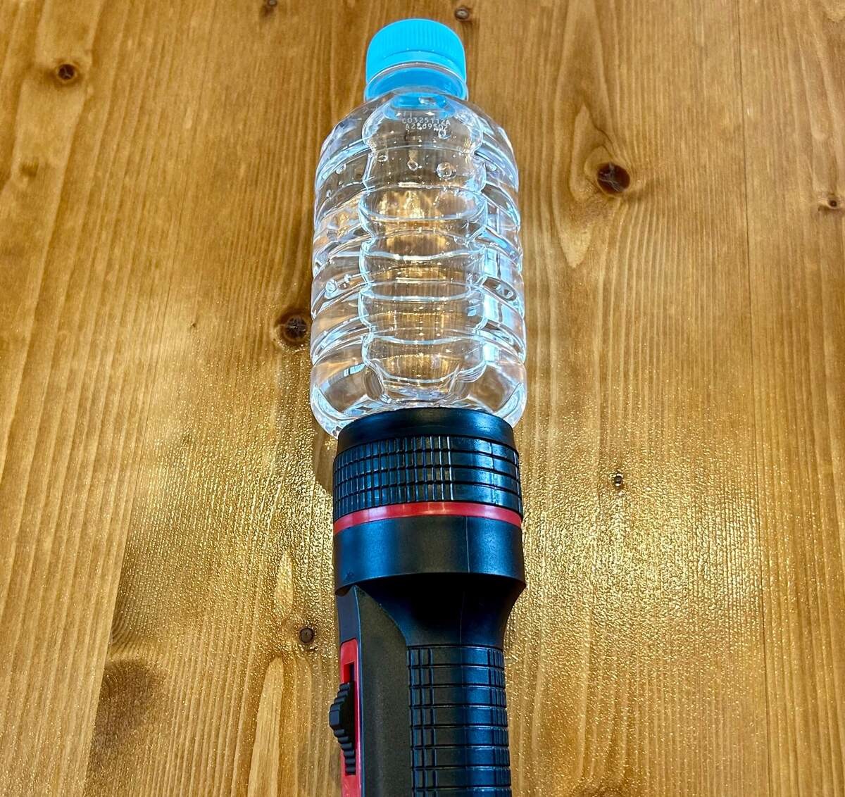 懐中電灯の上に、ペットボトルをポンっとのせるだけ。