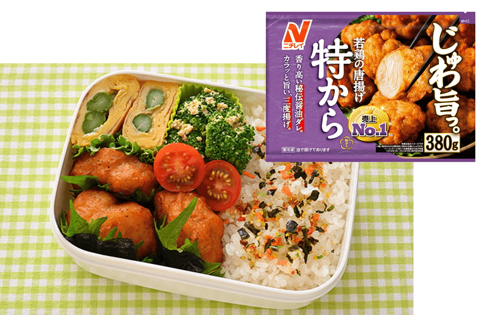 レシピ①鶏のから揚げ+卵焼きアレンジの『特から®』磯辺巻き弁当