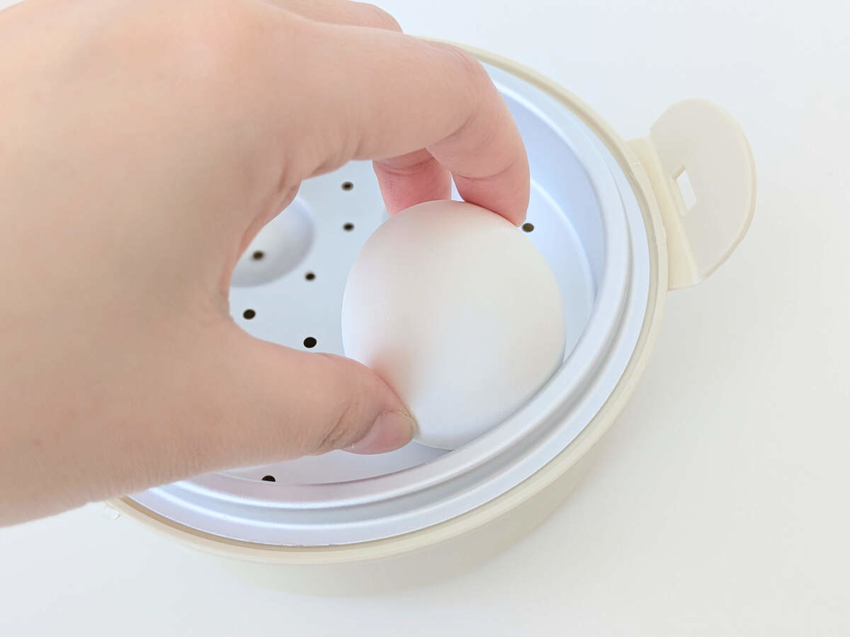 レンジで温めるだけでゆでたまごが作れるスリコ「ゆでたまごメーカー」