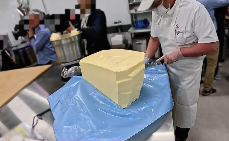 材料を計量していました!大きなバターの塊に驚いてしまいます!