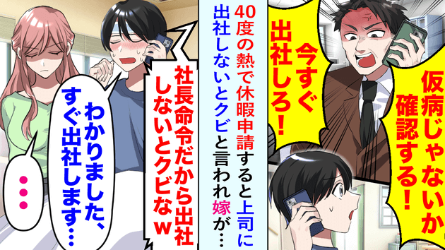 40度の高熱で休暇申請→パワハラ上司に「出社しないとクビ!」と言われ…激怒した妻が容赦ない反撃!