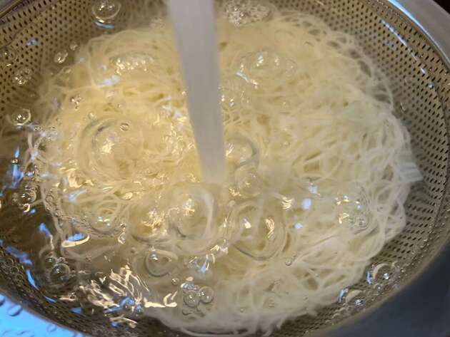 作り方①そうめんを茹で、マヨネーズと和える