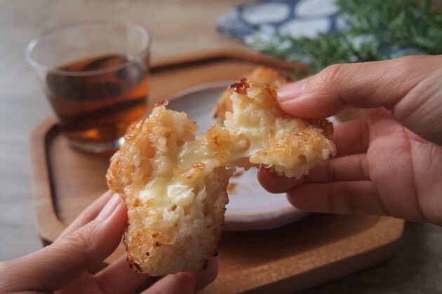 お願い!騙されたと思ってチーズ入れて!【焼きおにぎりが数倍ウマくなるレシピ】「びよーん伸びるよ!」