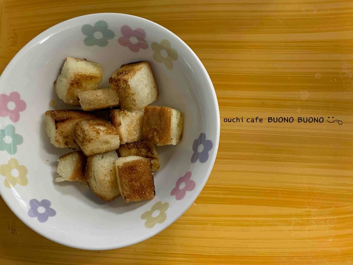 わが家のおすすめは、小さくカットしてバターと砂糖を塗り、フライパンで焼くラスク風おやつ。