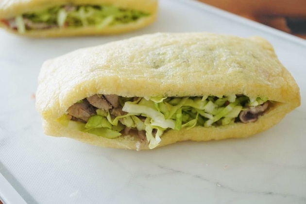 4等分に切って食べると少し食べにくかったので、油揚げを半分に切ったものに具材を詰めて焼いた方が食べやすいかなとも思いました。