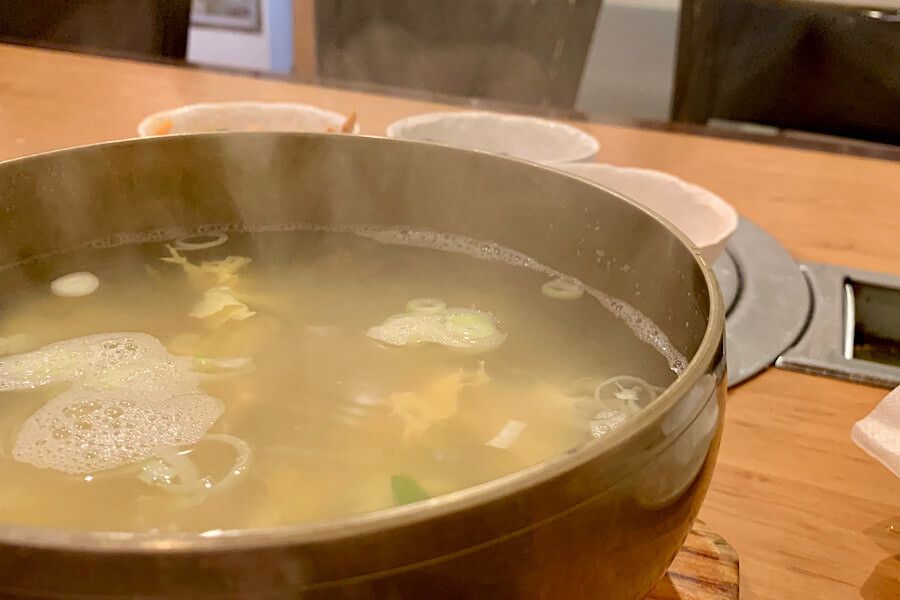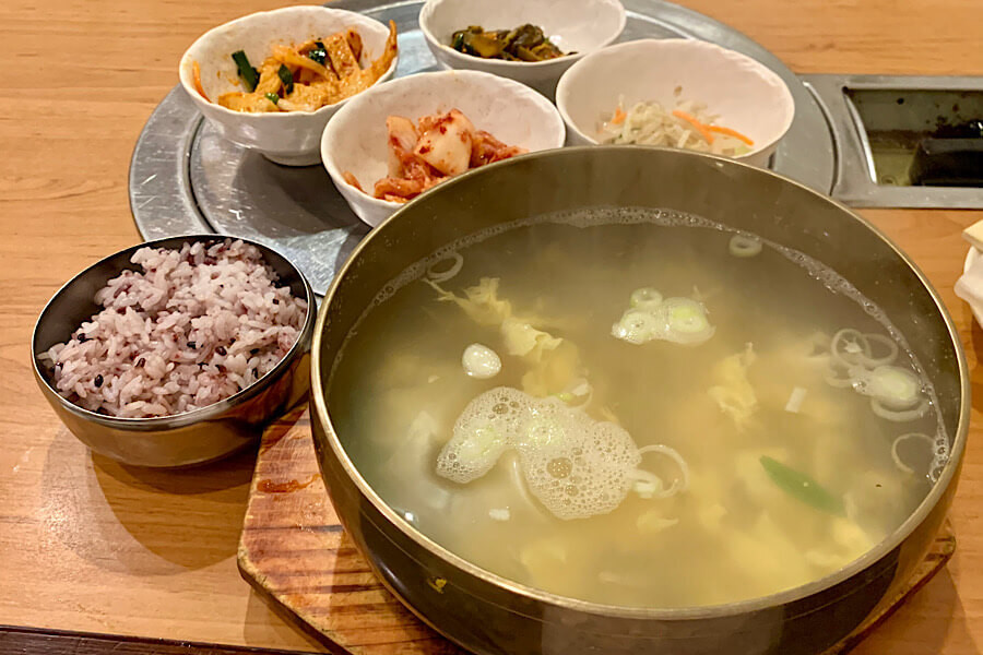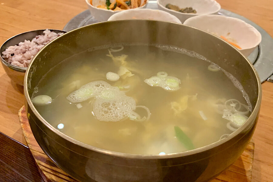 大きい器でもどんどん飲めてしまいます。途中パンチャンで味変をしたり、ご飯をスープに浸しても美味しかったです。