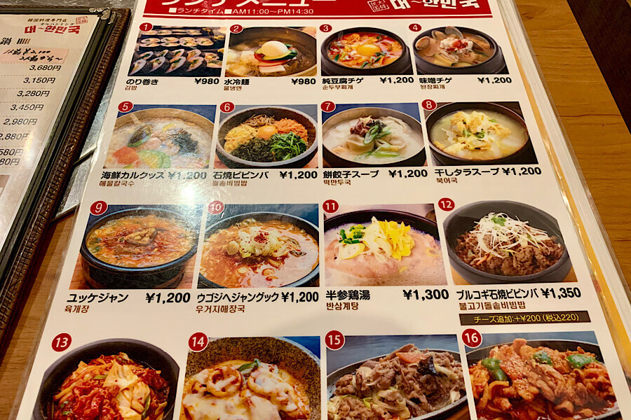 ビビンパやチゲ、のり巻きなど定番メニューもありますが、名前だけではよくわからないものもあります。