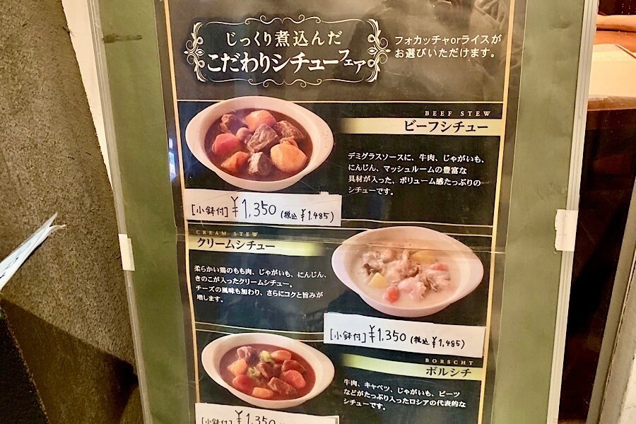 ビーフシチュー、クリームシチュー、ボルシチといったシチュー系も隠れた人気メニューで、常連さんはよく注文するのだとか。