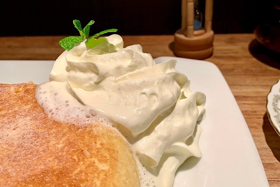 添えられている生クリームが甘すぎずなめらかで、素朴な石窯ホットケーキと一緒にたべると、甘さとコクが増します。