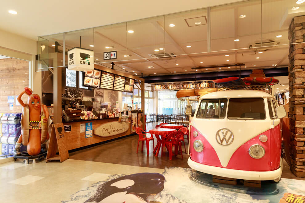 フードコート内にはフォトスポットにもなるワーゲンバスが!お子さま連れにも大人気です。