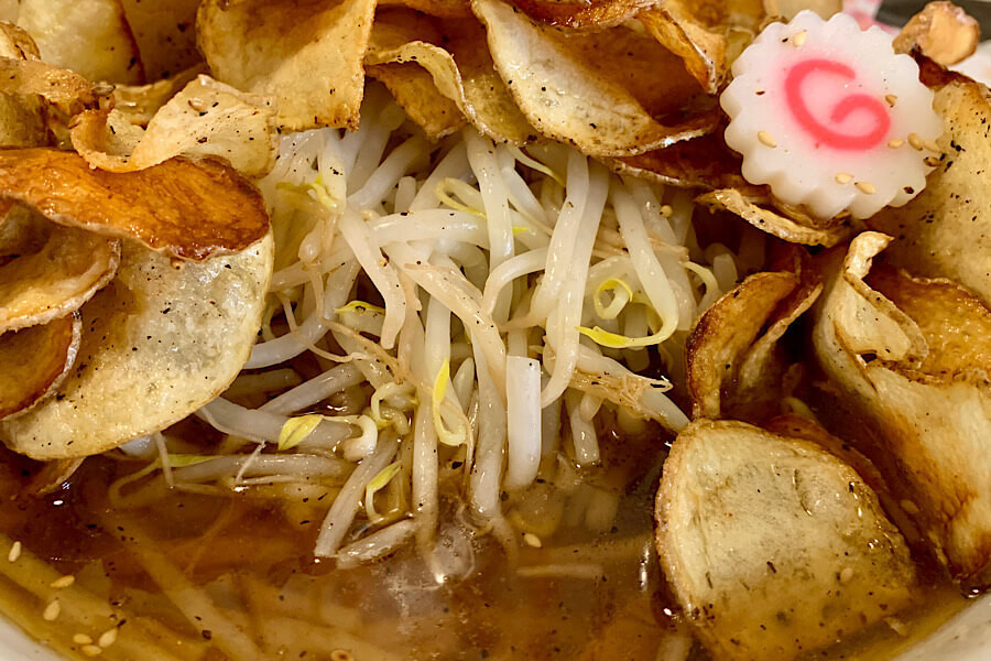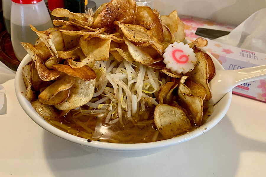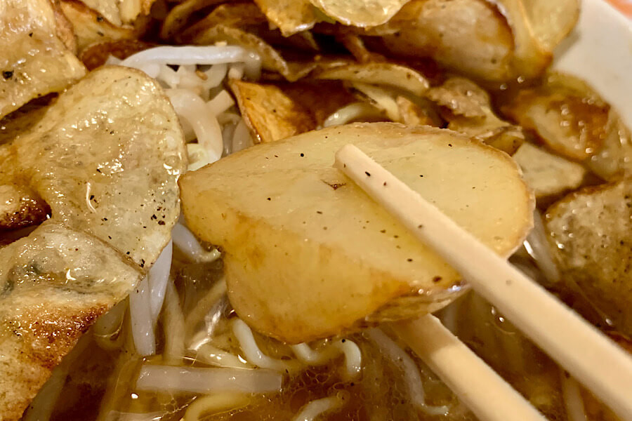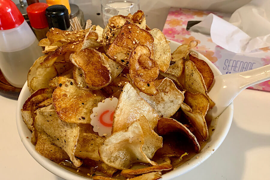 注文から30分くらい経ってようやくお目当てのラーメンが運ばれてきました。女将さんが「待たせちゃったのでポテトチップスを多めにしておいたわよ」と言ってました。