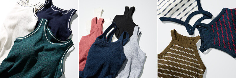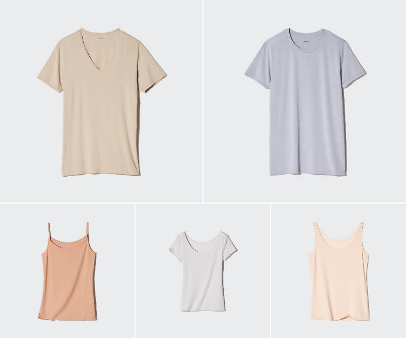 M エアリズム V ネック T 半袖、M エアリズムクルーネック T 半袖、W エアリズムキャミソール、W エアリズムタンクトップ、W エアリズムU ネック T 半袖、ぜひこの機会に試してみては。